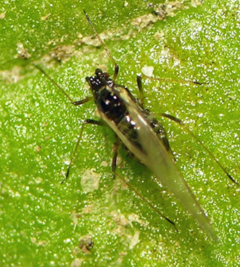 A winged green peach aphid morph (photo by Andy Jensen, NW Potato Research Consortium). A "morph" is a distinct form within a species. Wingless aphid morphs never develop wings. They are colonizers whose purpose is to build up the population. The winged morphs are migrators and are most prevalent in the spring and fall when they are looking for a new place to live.